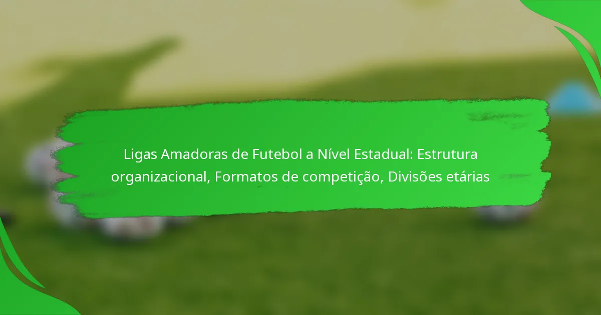 As divisões etárias nas ligas de futebol amador a nível estadual são determinadas principalmente pela idade do jogador a uma data limite específica, frequentemente definida no início do ano civil. Isso garante que todos os jogadores numa divisão tenham idades semelhantes, promovendo a equidade na competição.